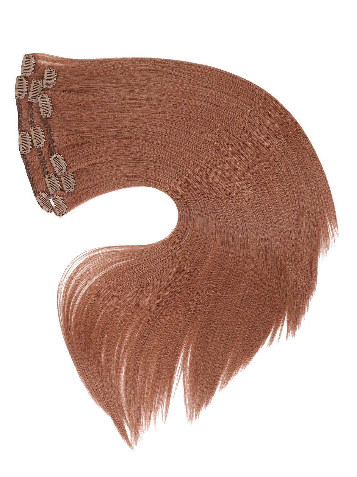 Пряди крепятся на клипсы-заколки. В наборе три широкие затылочные пряди шириной 12, 17 и 20 см и 2 височные пряди шириной по 6,5 см.