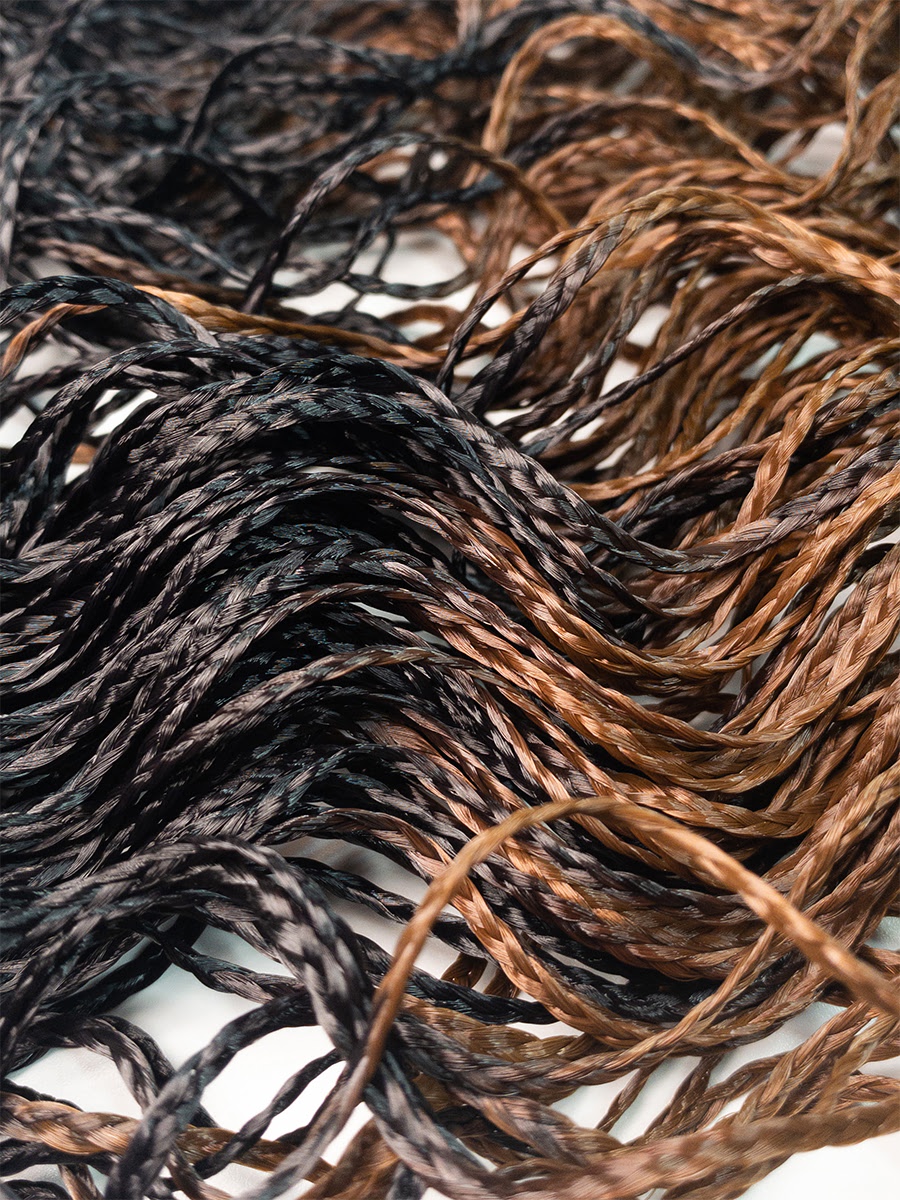 Для надежной фиксации кончиков косичек ввиду уникальной структуры волокна рекомендуем использовать не стандартный узел, а клей для канекалона (при его отсутствии допускается применение любого клея быстрого действия).
